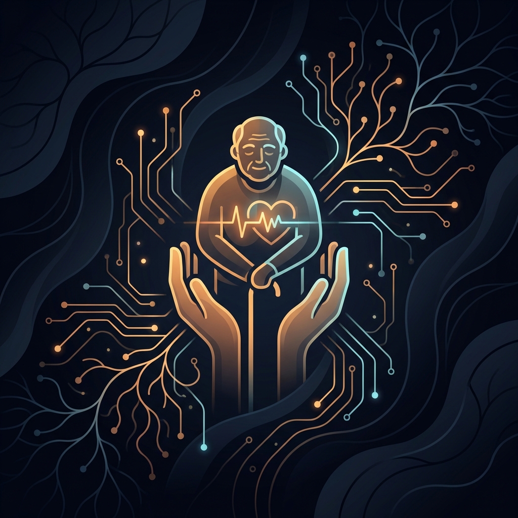 Remote monitoring and fall detection automated. Companionship robots exist but underperform vs humans. Physical care, medication management, and emotional support remain human.