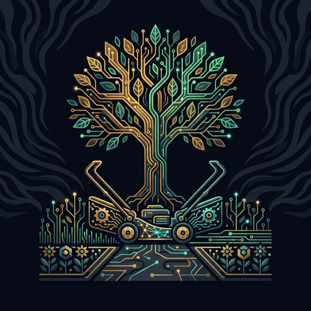 Robotic mowing increasing for flat lawns. Design visualization AI-assisted. Tree work, hardscaping, and complex planting remain highly manual.