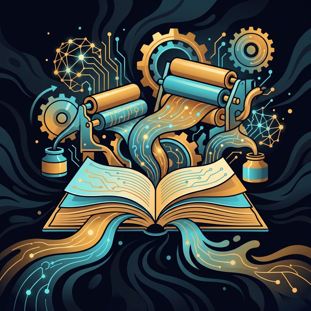 Editing, layout, and distribution automated. Self-publishing AI-native. Slush pile drowning in AI content. Value shifts to curation, author platform, and marketing.