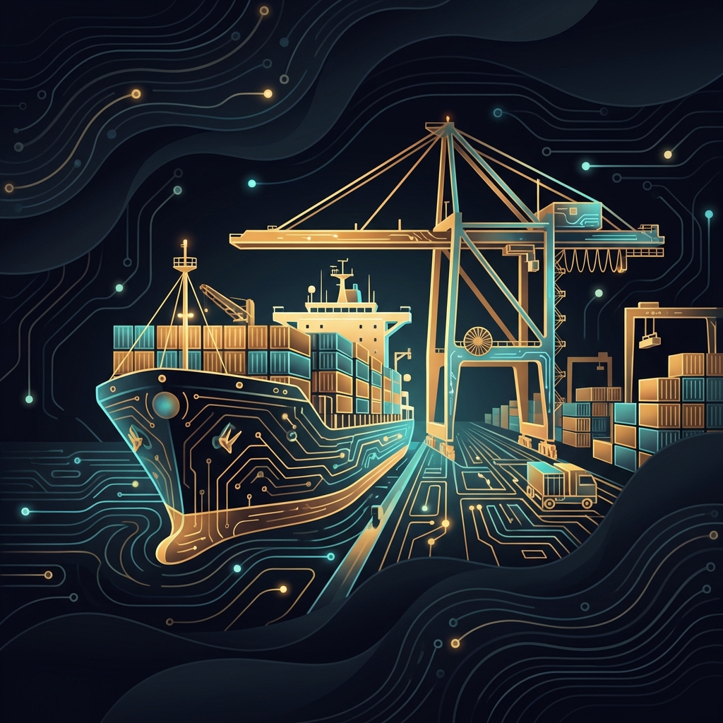 Route optimization AI-driven. Autonomous ships in development. Port automation accelerating with cranes and AGVs. Seafaring still requires human crisis response.